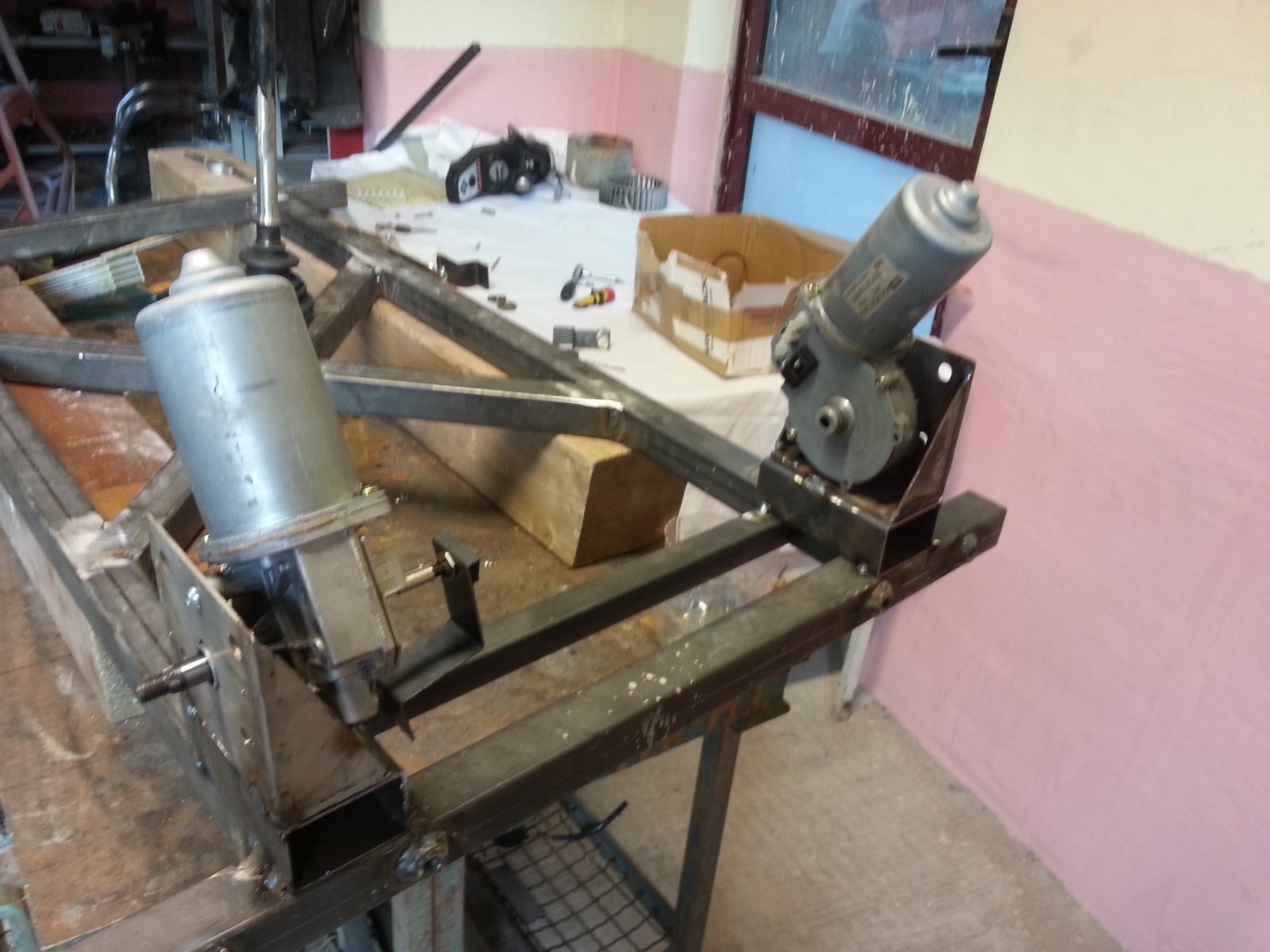 The utilized solution to move the frame, are two wiper motors, exactly SMOLKA VALEO 404.458, powered and controlled by motomonster card and Arduino UNO, controlled by 10Kohm linear potentiometers.