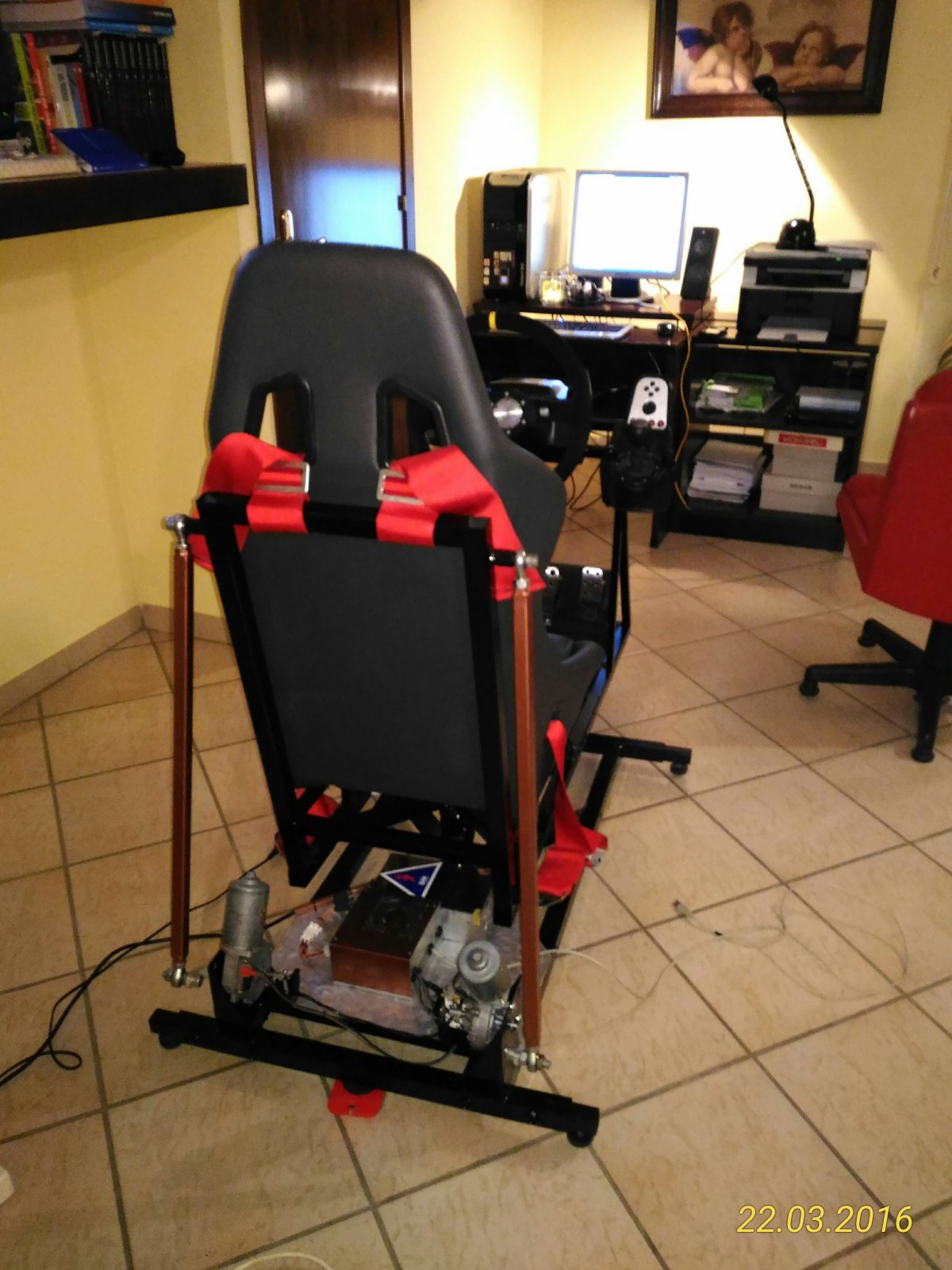 Well done @IRaceSim! I have plans for making (finally) 2DOF sim with almost exactly same setup. Can you share the dimensions of your motor brackets? Those look pretty strong ones.