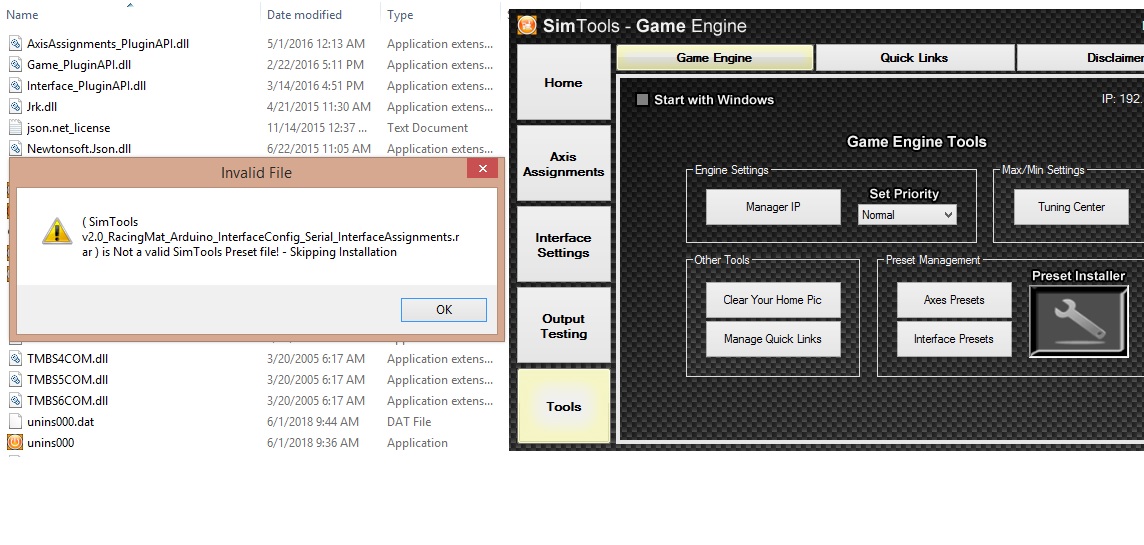 SimTools Presets 2DOF Arduino Simulator with rear wipers