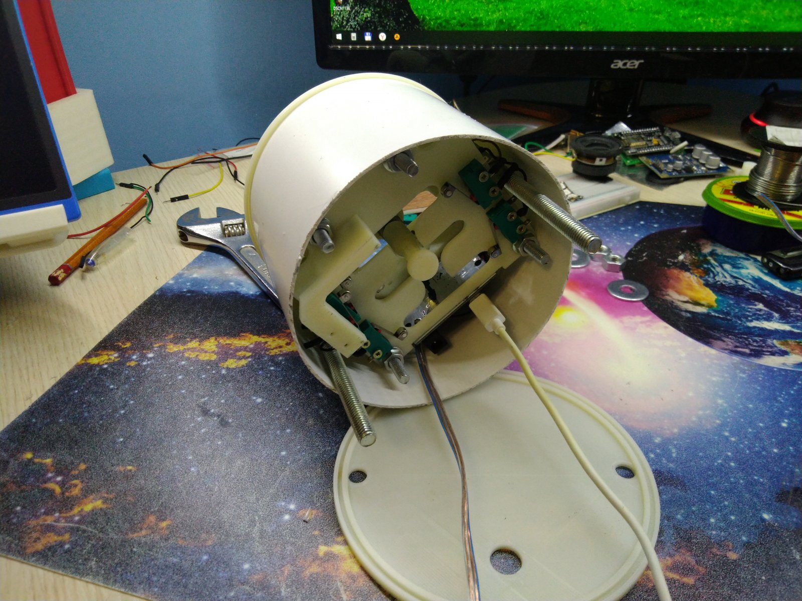 Print out the “Ring.STL” ring. Fasten the ring from above with 10 screws with 2.5x13 self-tapping screws, carefully tucking the bottom edge of the cover under the ring. It should look like this. Good luck!