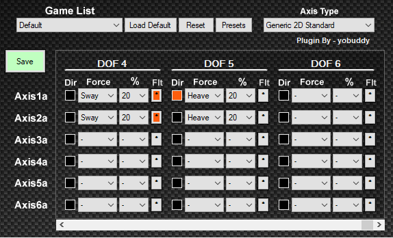 " Both boxes will be either checked or unchecked for surge and pitch, while only one will be checked for sway and the opposite one will be checked for roll."