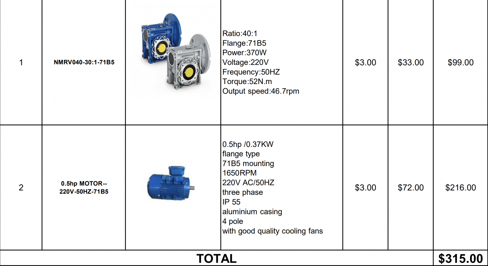 3x 0.5HP AC motors + gear reducers for 300$?
