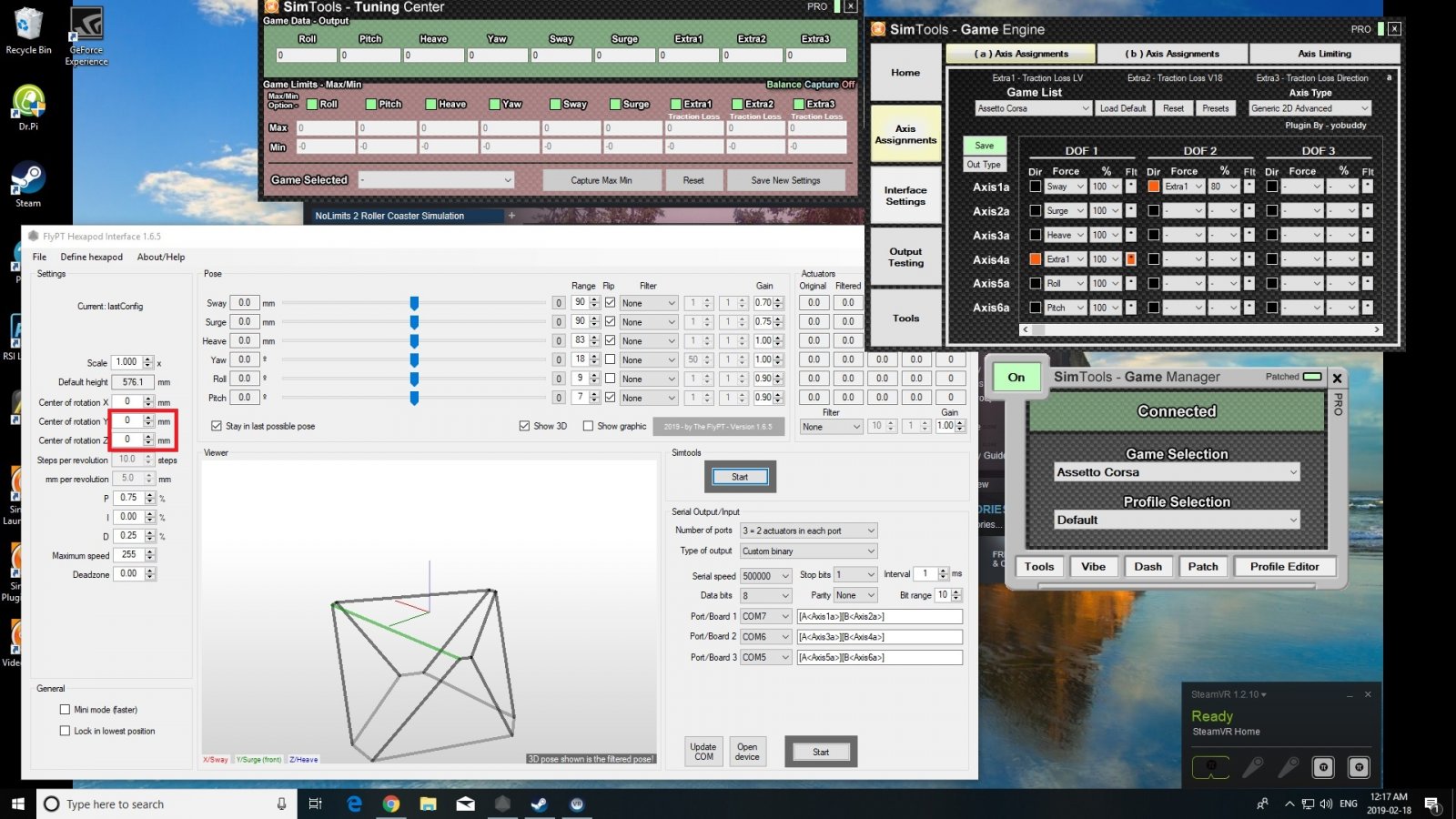Again for heave: If you have -10 to 10 value in Simtools tuning center for heave and 100 mm range in the interface, the values will be mapped.