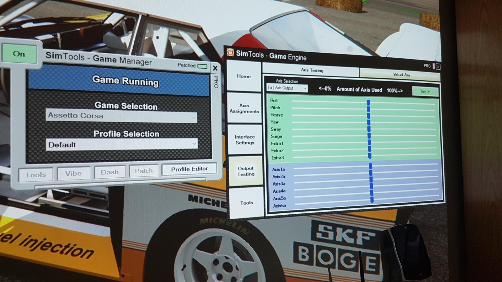 here a pictures of my setup. Game Running only when im racing, not at the biggining of the game. The game engine continues stoped and crashing. If i open it in the midle of the game, it can't recibe any virtual data.