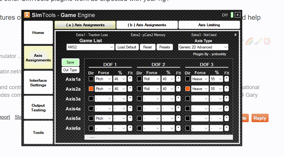 Hi Bro and thx for helping, got it working now. I set the game like my other Games in SimTools, but with that game and my other games it feels like there iss a lil bit too much motion going on. Even when I use the remote of my njMotion Seatmover (there are 3 diometers, one for the short motions, one for long motions, and one for the overall motion) and set the overall motion to some low settings, it feels like I feel to much street/ground effects. For example, when I drive a normal straight road without any holes or rocks on the ground, it feels like there is always a lil bit motion. Is that normal or did I set something wrong? I attached my settings for you maybe you can help, thanks and have a nice Day :D