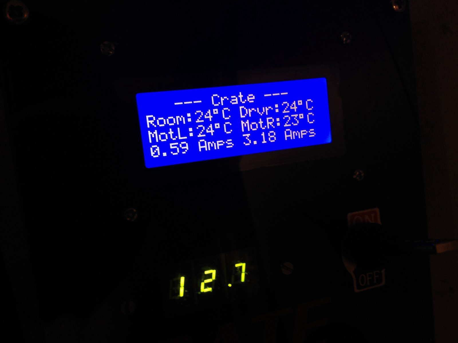 Well, there actually WAS one problem: I'm not sure what is causing it, but two times my right motor has died for a couple of seconds but comes back to life and works rest of the session (hours) like nothing happened. At both times there wasn't particularly harsh situation, no big moves. I see my peak amps and temps from the lcd, max amps were about 12A on the right motor and 9A on the left. Temps about 31 celcius on the surface of both motors (room temp) and 41 celcius under the H-bridge.