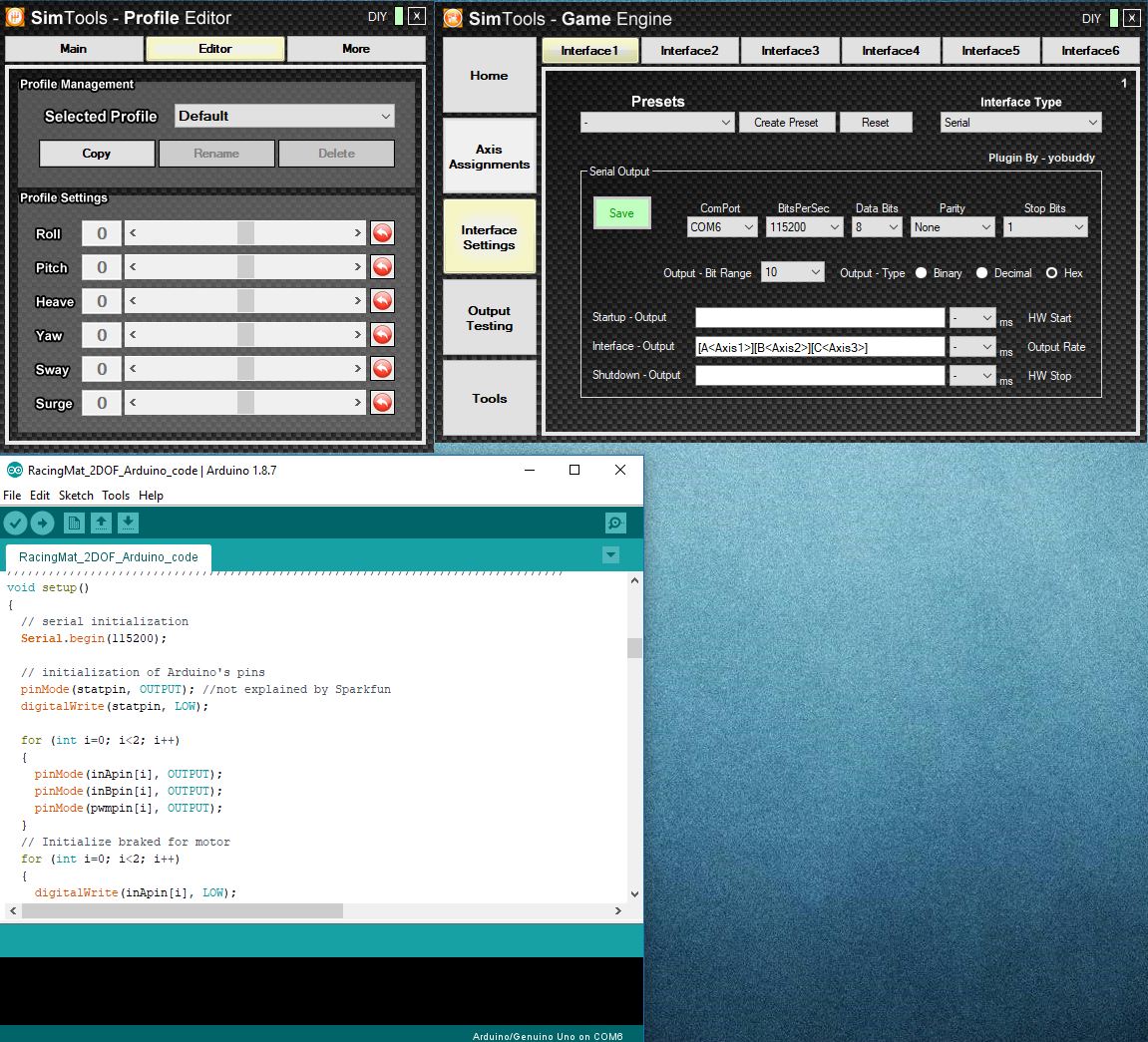 What is wrong? I've uploaded the @RacingMat _2DOF_Arduino_code with a USB cable to the Arduino...installed SimTools latested version..downloaded/installed/patched some gameplugins..