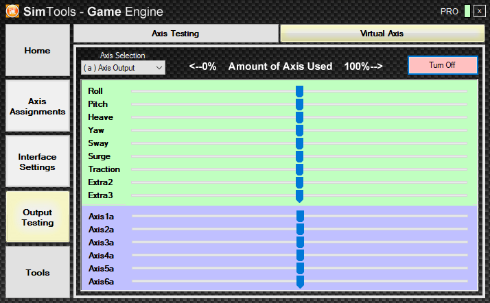Now I've everything working but when I play with the game using the virtual axis (I'm making some offline test before connect the hardware of my simulator) I don't get the values of pitch, roll and yaw as you can see also from the tuning center picture I've attached.