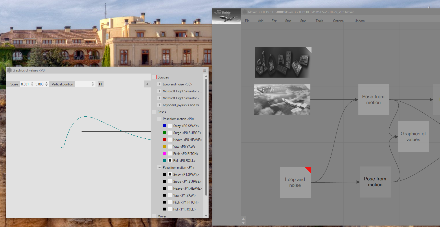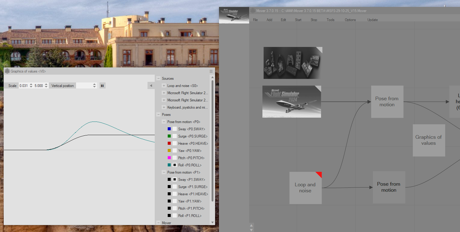 I don't need that complicated "type of motor" simulation, a simple sine wave for roll acceleration and cosine for pitch acceleration would do. All I need is to scale down the frequency by the gear ratio. So if there was an input filter field for the RPM value I'd be happy.