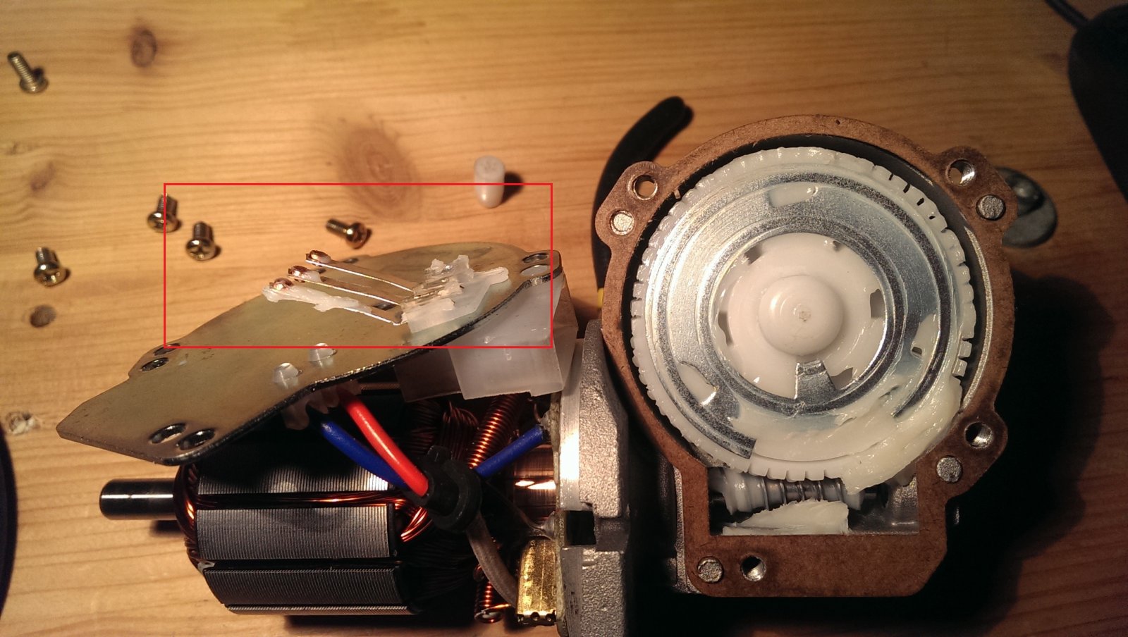 Managed to take apart the motors, the red box I think represents the ground to the body of the motor?! I have removed those.