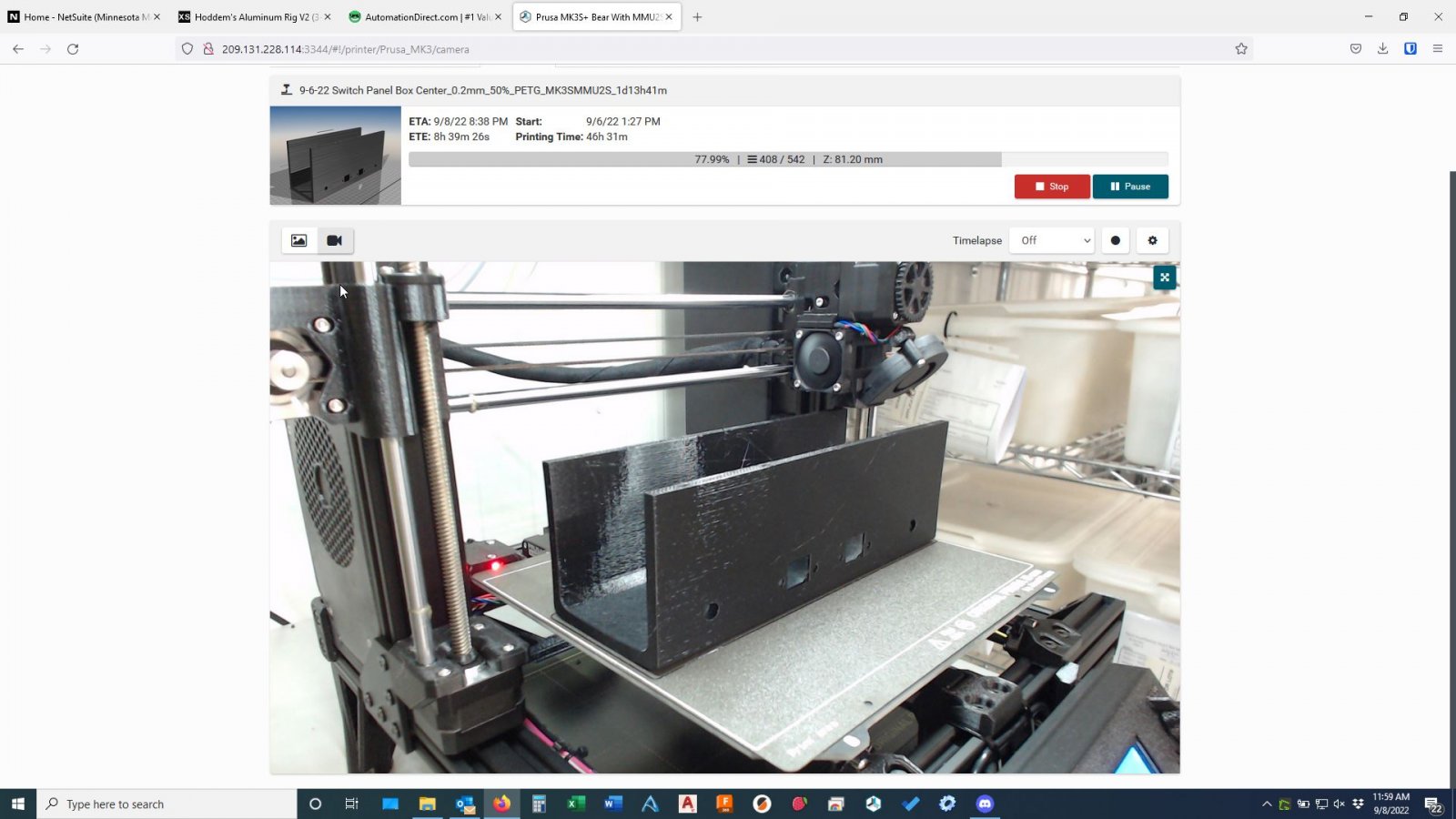 I am now rocking a heavily modified Prusa MK3S+ (Bear Frame, Revo 6, Repetier Server, C920 Camera, MMU2S) and it is a really great printer, but compared to my MK2.5S it sure seems slower. the center section of my control box clocks in at around 37 hours, that same part would be close to half the time on my MK2.5S.