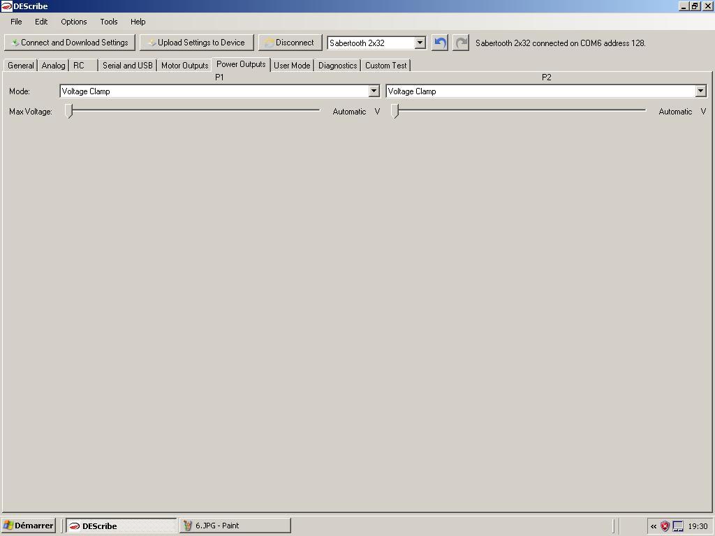 Voici les captures d'écran de describe pour la configuration de la sabertooth.