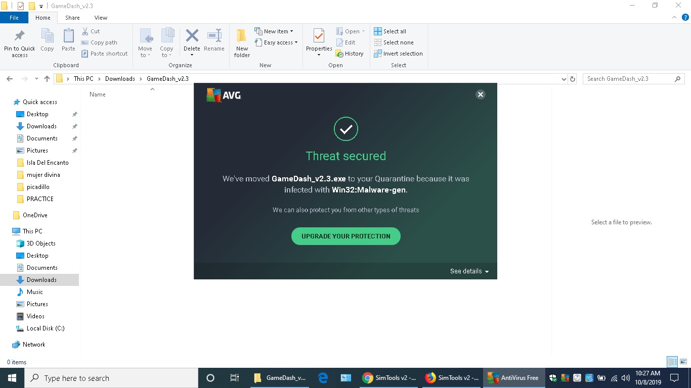 usually ill let files that have issues that i assume is safe added as exception even though avg flags it..but after something ate up drive space i got concern.. and i hope it was not game dash that caused it