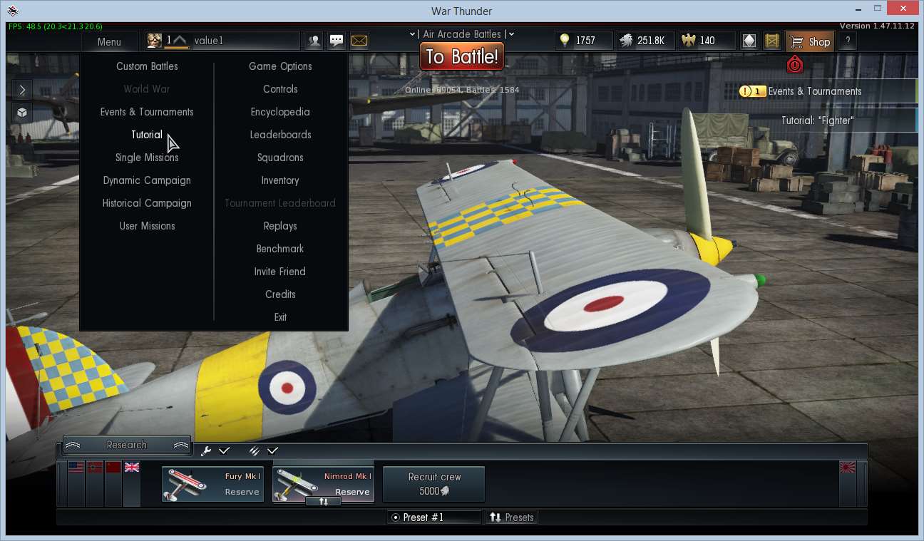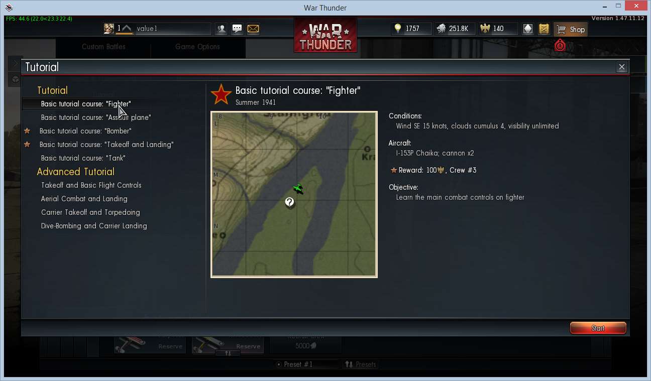 In WarThunder leave the tutorial, go back to the hangar and start the tutorial 'Basic tutorial course "Fighter"'