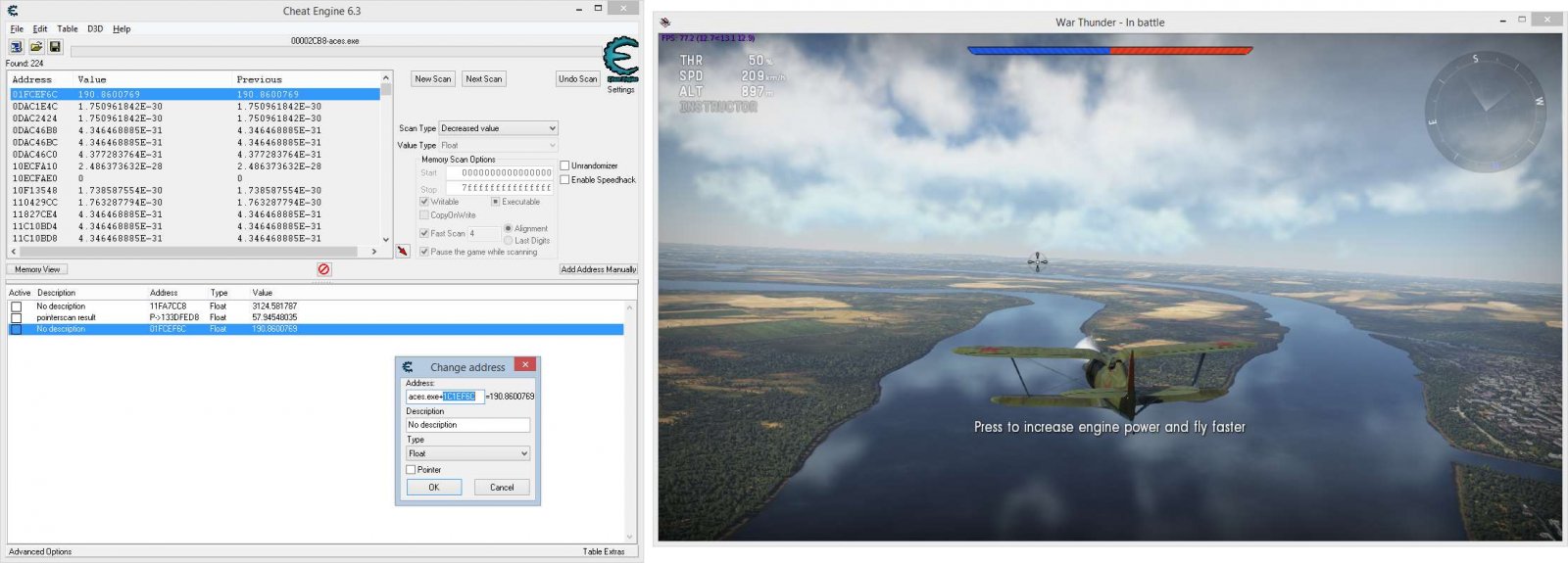 Connect now CheatEngine to WarThunder (aces.exe)