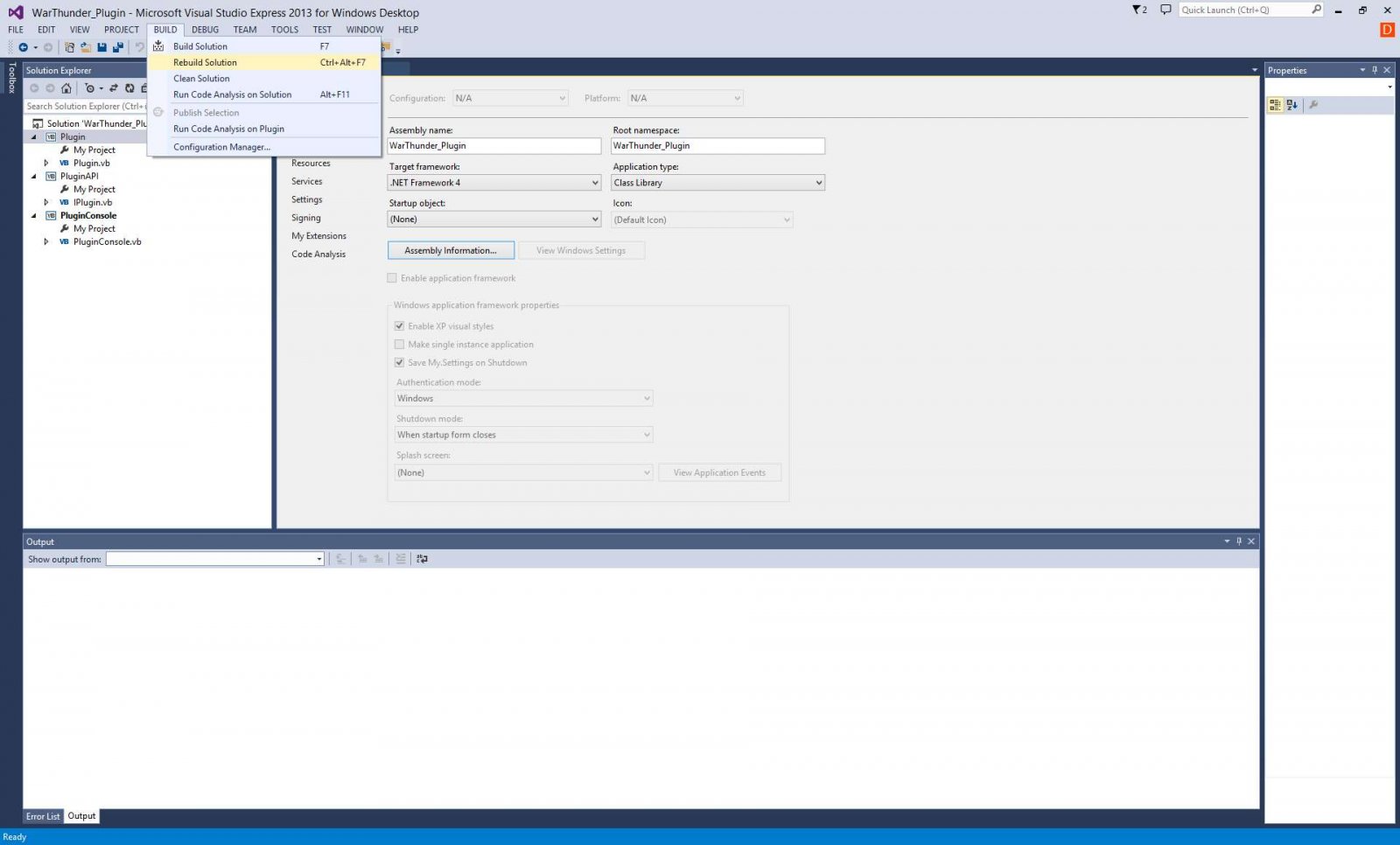 Open now the WarThunder_Plugin.sln in Visual Studio Express 2013 for Windows Desktop.