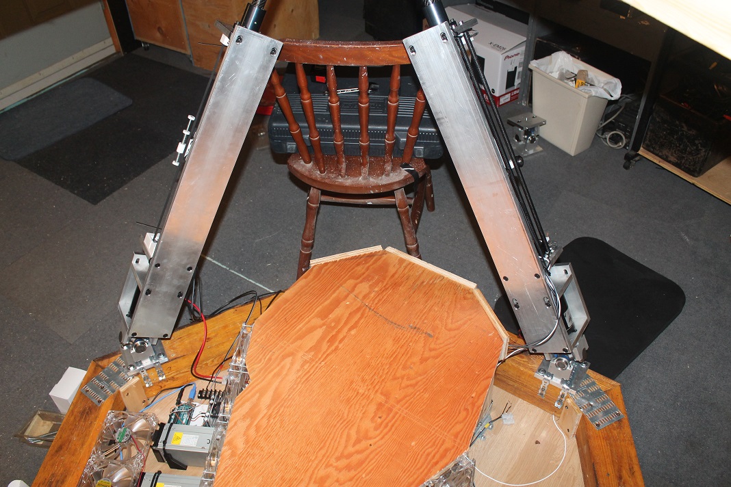 Back to the project, this is what is will look like at about the middle of the actuator. At about 44 inchs (112 cm) from the ground. The platform can hold by itself, but I leave the chair for safety.