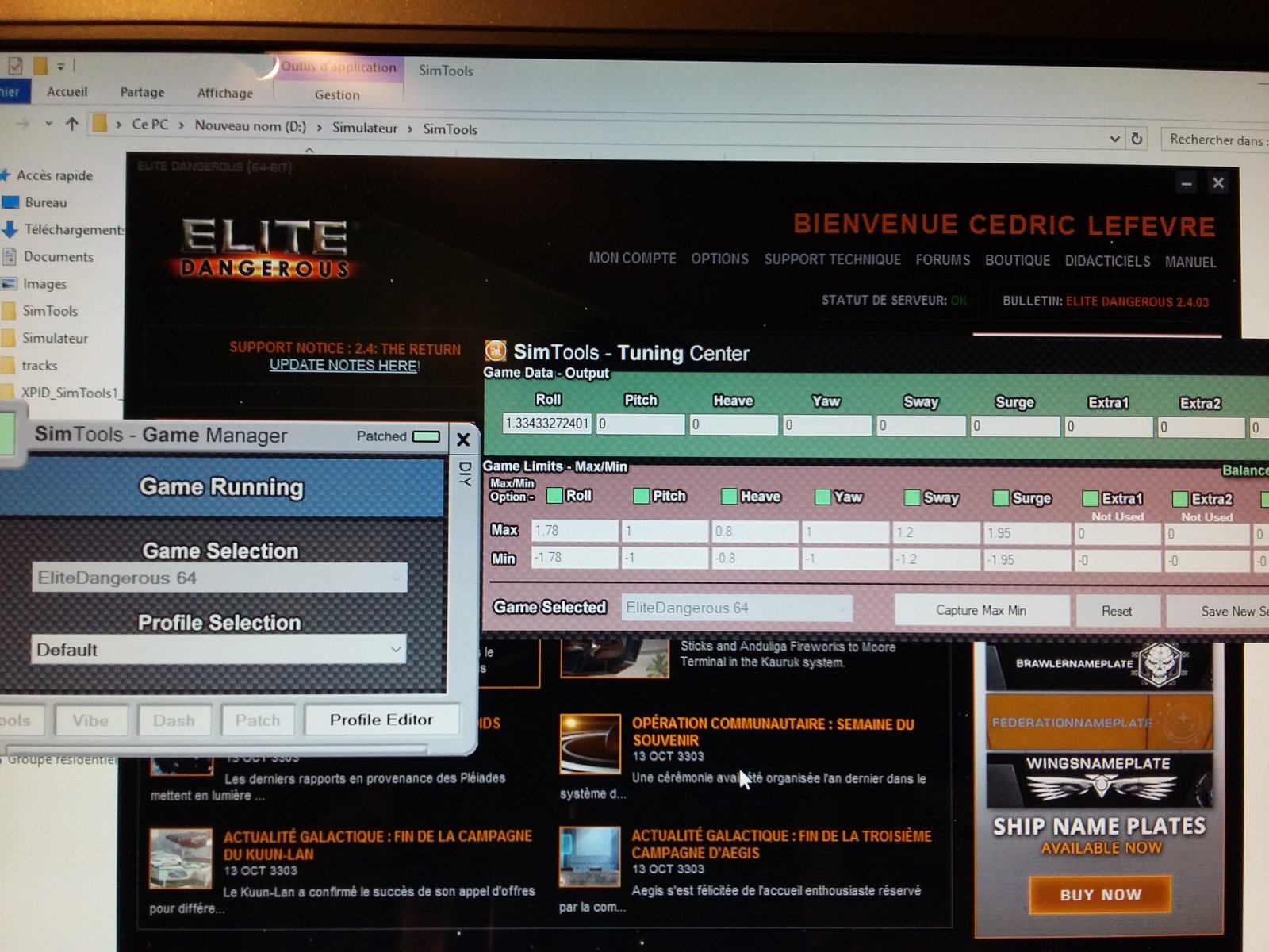 Administrator mode ok for game engine and game manager. When i launch the game the motion plateform moove only in roll mode in right and stop. In game any movement. Heave, pitch, Surge, Sway and Surge are activated in 20%. I play with assetto corsa and the plugin work perfectly. Can you help me please ? Thanks