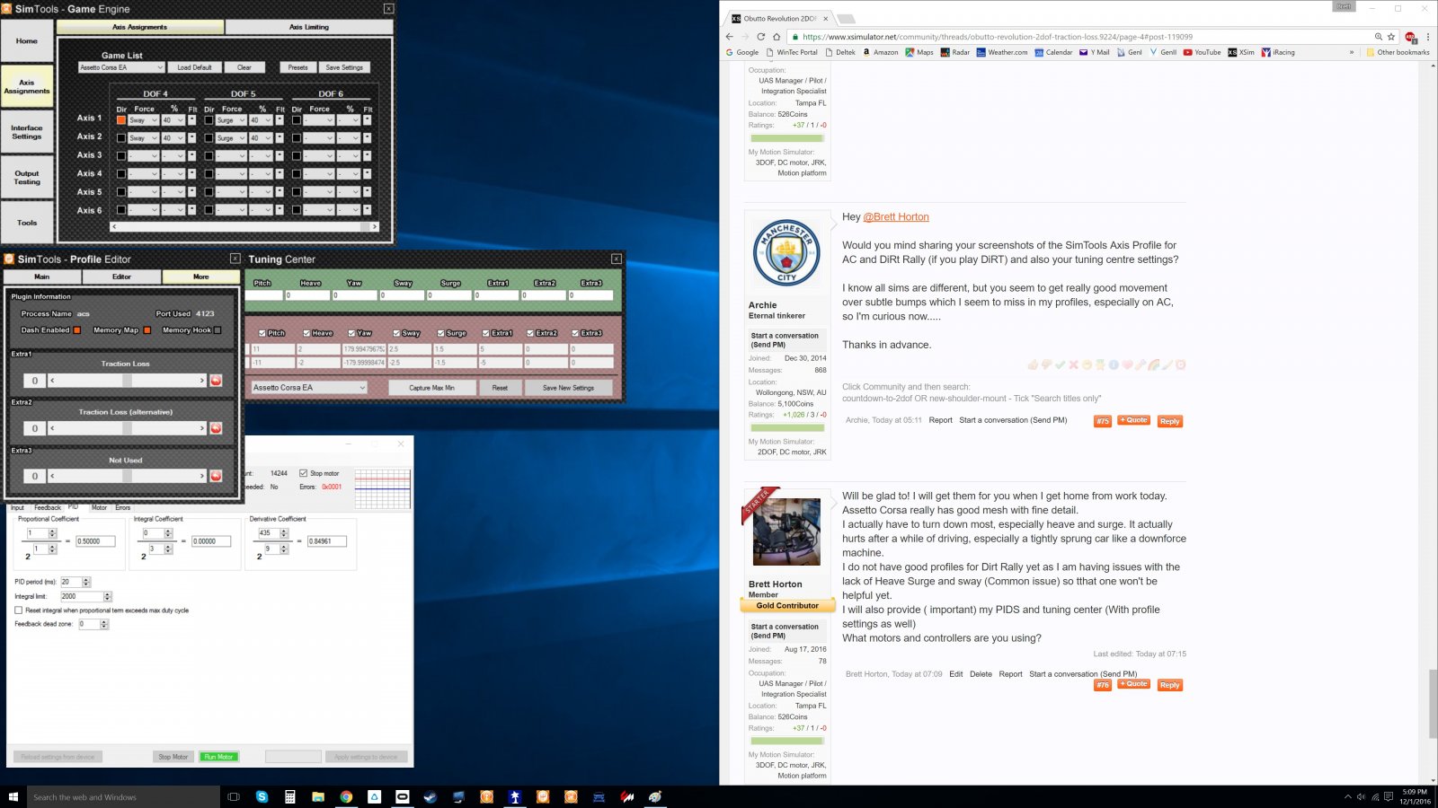 Would you mind sharing your screenshots of the SimTools Axis Profile for AC and DiRt Rally (if you play DiRT) and also your tuning centre settings?